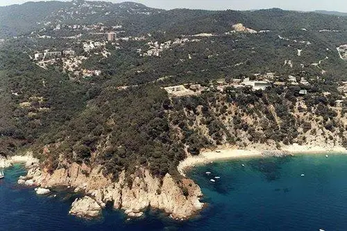 Cala rocosa desde donde se observa la ladera de un monte repleta de excelentes villas unifamiliares y más que para bañarse es recomendable para la pesca y el buceo.